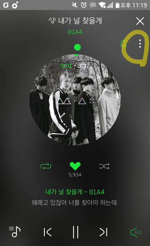 노래 틀었을 때 오른쪽 위에 점 세 개 누르고