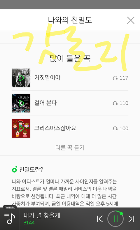 그러면 내가 비포 노래 몇 번 들었는지 나오거든