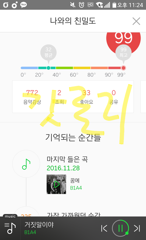 노래 들었다고 횟수 찍히면 스밍이 잘 된거!!