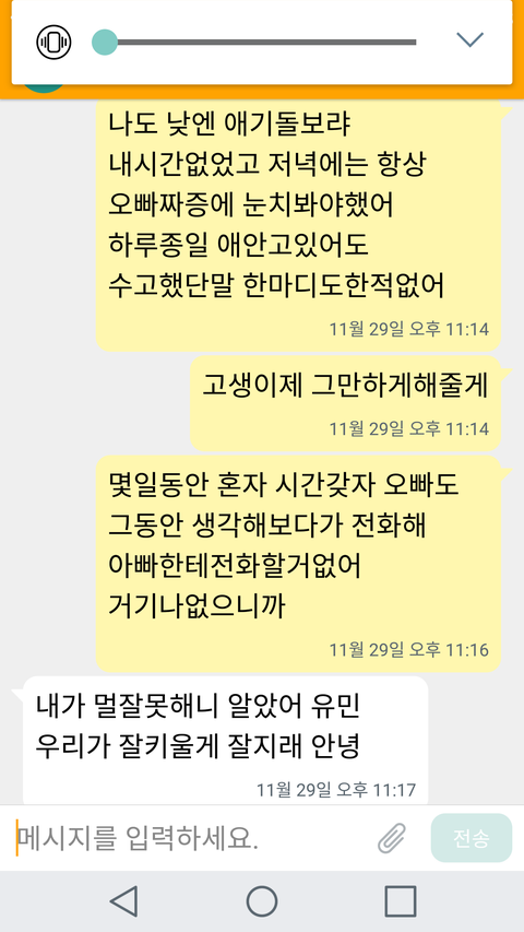 나왔으니 숙식제공하는 곳 많아요. 그쪽가서 일하시면서 연 끊어요. 지금도 연락하는건 님한테 마음이 있어서 전화를 하는게 아니고, 당장 애기 돌볼 사람이랑 살림 해줄 사람이 없어서예요. 하아... 지나간 일들을 왜 그랬냐고 해봐야 뭐가 되겠어요. 그냥 빨리 거기서 나오는게 최선이예요.