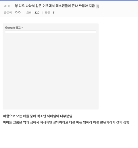 요즘 긷갤에서 엑소악개들이 디오깐다고 정치질하고 다닌다고해서 검색해봤다는데 이런류의글 조카 많다