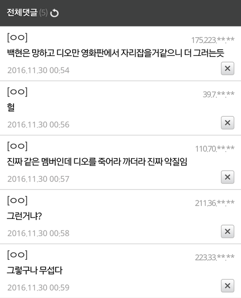 타멤버악개들이 디오깐다고ㅋㅋ정작 개인커뮤에서 타멤버들 까다가 털린게 누군데....