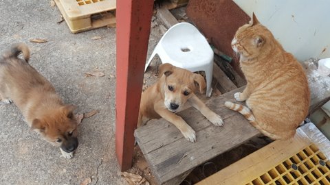 한마리 모모가 엄마 미미와 공장에서 지내고 있습니다 ㅎ