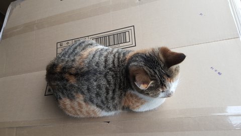 추워지니 햇볕드는 박스 위에서 식빵굽고 있는 모모네요~