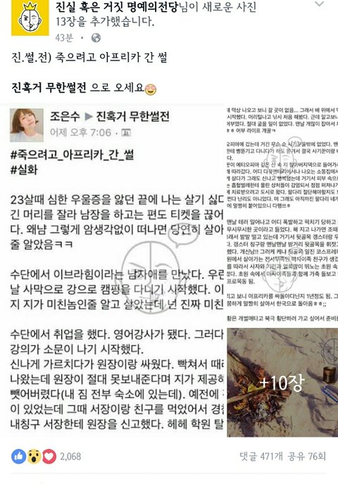 페이스북에 올려진 것을 캡쳐한 것 입니다.