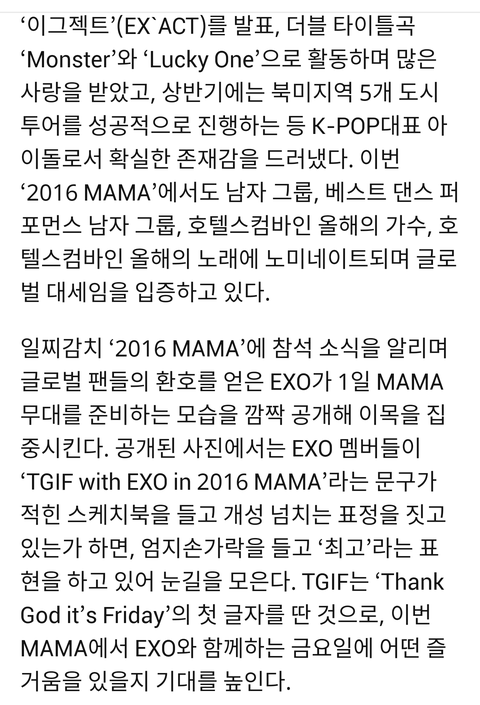 '2016 MAMA' 측 "엑소, 스페셜 무대 펼친다"