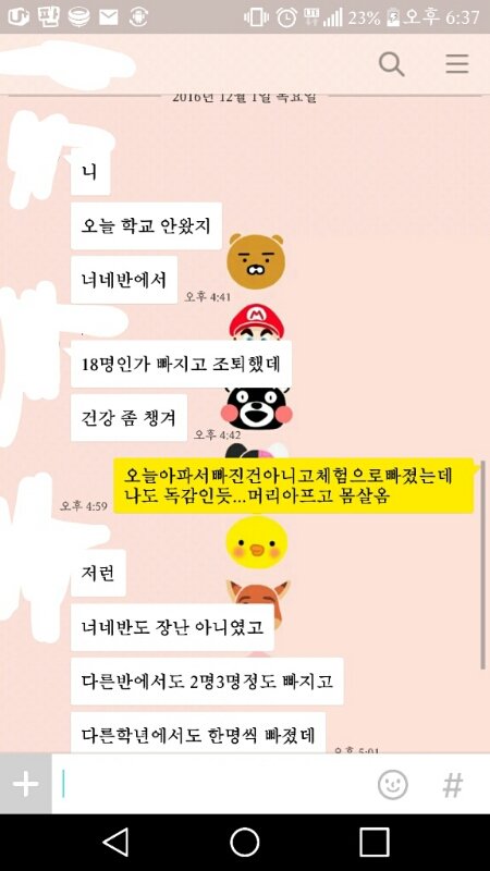 점심에 친구가 너희반 18명빠졌다구ㅋㅋㅋ