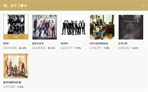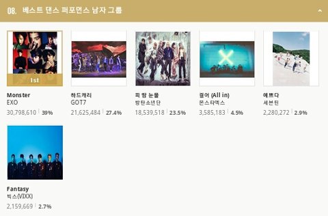 +추가) 댄스 퍼포먼스부분에대해 엑소가 투표는 1위인데 투표율 3위인 방탕소년단이 왜 받냐 라는 댓글이 많아서 써!