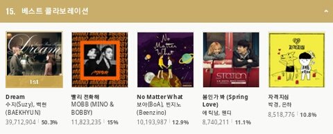 수지 백현 드림 베스트 콜라보레이션부문 1위!