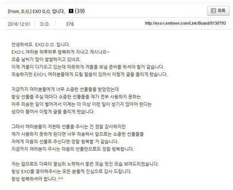 항상 행복하라는 말 경수한테서 가장 많이 듣고있고 또 실제로 경수때문에 행복했던 날이 많은것 같아ㅠ 이렇게 또 이쁜마음 전해주고ㅠㅜㅜ