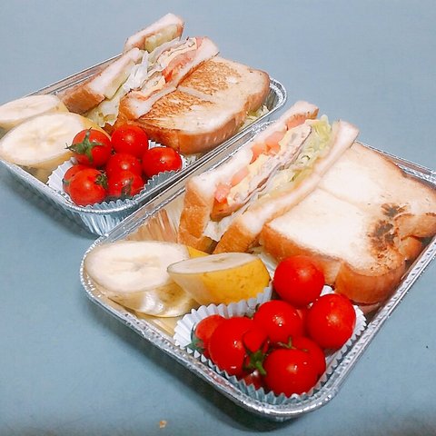 간식으로 토스트와 과일 쪼금해서 만든 도시락