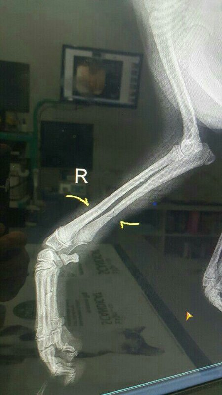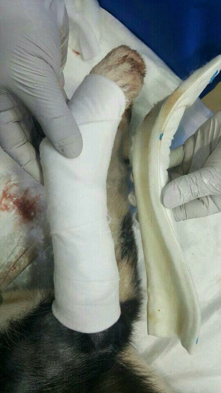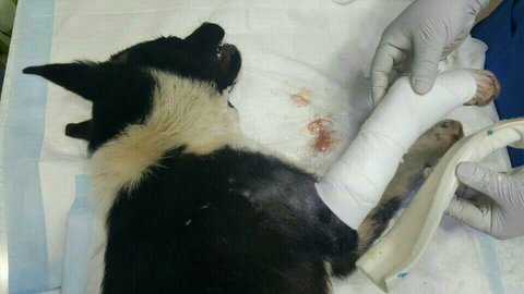다급히 병원으로 옮겨 검사결과 앞다리 골절과 턱에 금이간 상태였습니다.