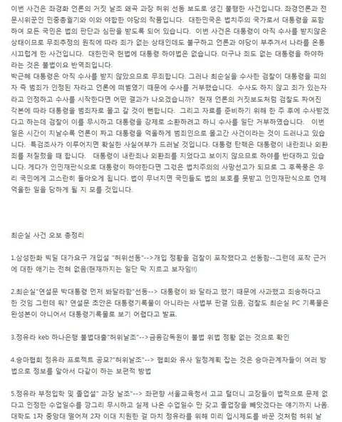 본론으로 들어가서.. 사실 이번 국정사태에 대해서도 저도 처음엔 온 국민과 한 마음이었습니다.