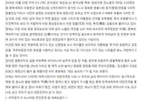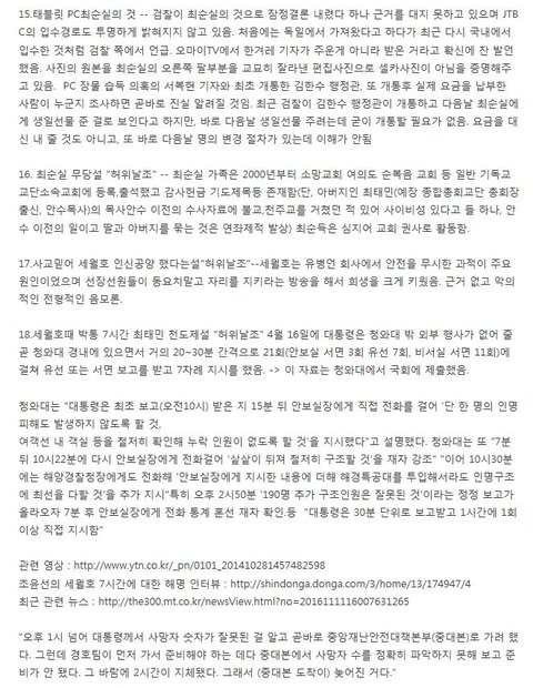 처음 사태가 터졌을때 이 사건에 대한 온갖 글들과 JTBC의 방송, 뉴스, 신문기사 등