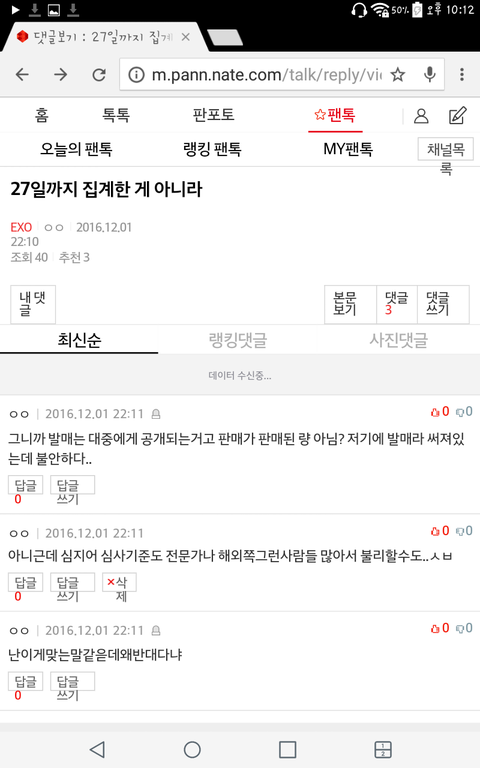심지어 엑소팬톡에서도 불안하단 얘기 많이나왔ㅇ음ㅋㅋㅋㅋㅋㅋㅋㅋ멜론은 반박할 자료가 많지만 마마는 심사기준도 다르고 해외인기도 반영하는데다가 이번 피땀앨범이 엑소몬스타 앨범량넘어서ㅋㅋㅋㅋㅋㅋㅋ심지어 마마중국 홈페이지 영상에 방탄 앨범량 1위인것도 언급함ㅇㅇㅇ