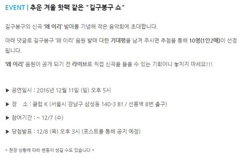 '왜 이리' 발매 기념으로 하는 길구봉구 라이브 쇼라는데