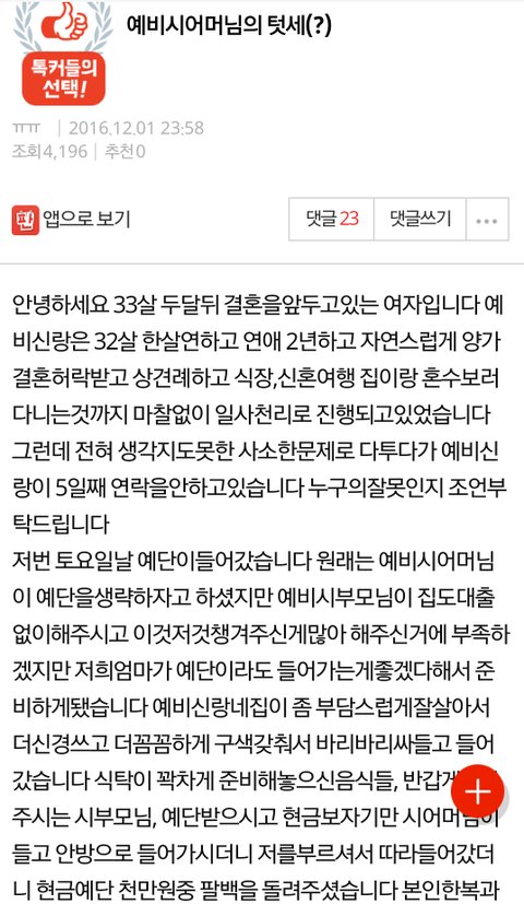[원본지킴이] 예비시어머님의 텃세(?) 추가글 포함