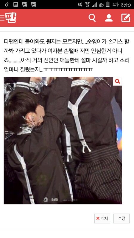 ㅋㅋㅋㅋㅋ큐ㅠㅠㅠㅠ아까 마마보고 엄청 쫄렸나봐ㅠㅠㅠㅋㅋㅋㅋㅋㅋㅋㅋ 너무 귀엽다ㅠㅠㅠ 타팬들까지와서 걱정해주는데 얼마나 가슴 쫄리고 무서웠을고...... 마마 6년차한테는 키스시키고 이제 2년차한테는 손키스 시킬려곸ㅋㅋㅋㅋㅋㅋ 마마가 정말 가지가지 하는구나ㅋㅋㅋㅋㅋㅋ 캐럿분들 멘탈 조심하세요....