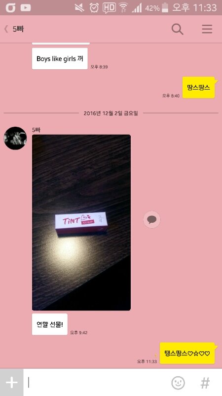연말선물이라면서 사다준 친오빠느님.. 딱 틴트 다썼는데.. 타이밍 개쩖bb