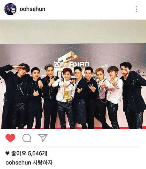 세훈아~ 4년 연속 대상 진심으로 축하해 그리고 오늘 무대 너무 멋있었어 그 바쁜 와중에 언제 또 준비했는지... 또 수상소감도 넘 감동이었구... 잘했고 축하하고 하띵하띵~