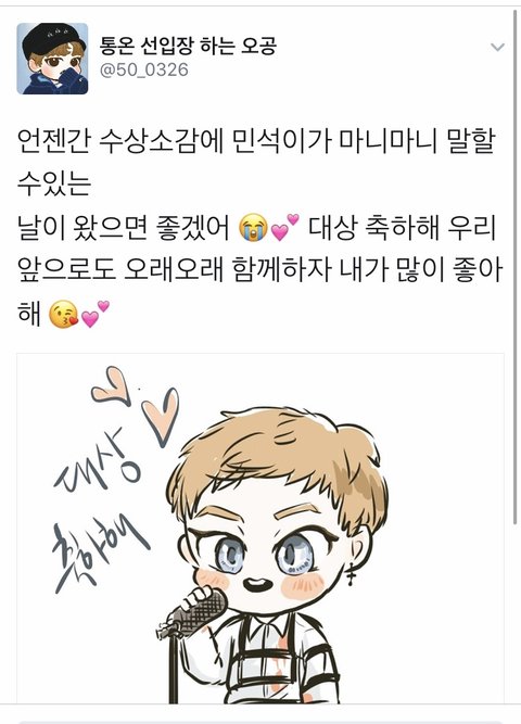 그래도 도쿄돔에서 감동적인 멘트를 해준것처럼 수상대에서 민석이의 예쁜 말들을 들어보고 싶다...