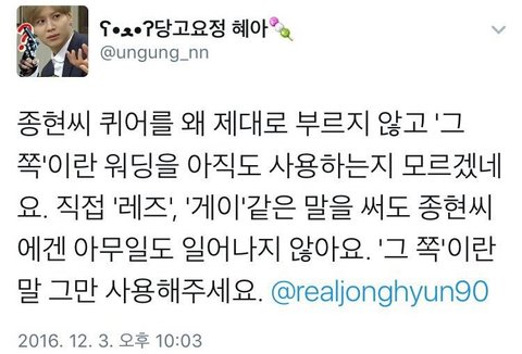 실제 영상속에 종현의 말을 들어보면 저렇게 했다고함 전혀 그쪽이라는 단어가 들어가 있지도 않음.