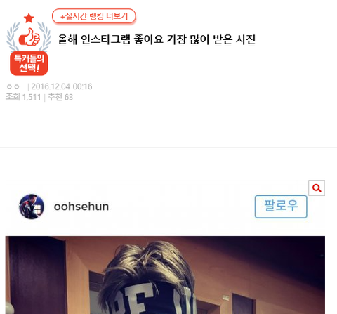 새훈이만 칭찬하는 글 아니고 엑소 전체 인별 팔로워수 높다 뭐 이런 거임