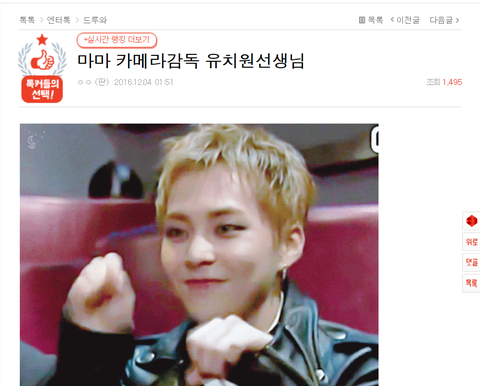 웅녀들 내가 잠이 안와서 오랜만에 톡선을 봤더니 우리 민석이 글이 있어! ㅋㅋㅋ 마마에서 샤샤샤 리액션 열심히 한거 >.< 추천도 눌러주고 가능하면 이쁜 짤도 올려주면 좋을 거 같음 우리 민석이의 귀여움을 널리 알리자
