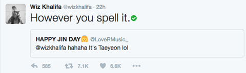 그래서 팬이 고쳐줬는데 "Taeyeon이야" 근데 위즈는 "상관없어" 라고 답함.