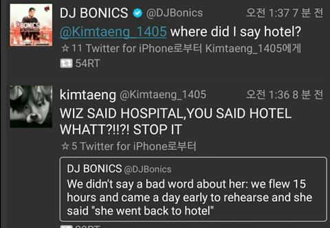 "우리는 태연이에 대해서 나쁜 얘기는 안했다. 우리는 15시간 비행기를 타고 하루 일찍 왔다. 하지만 그녀는 호텔로 돌아갔었다."