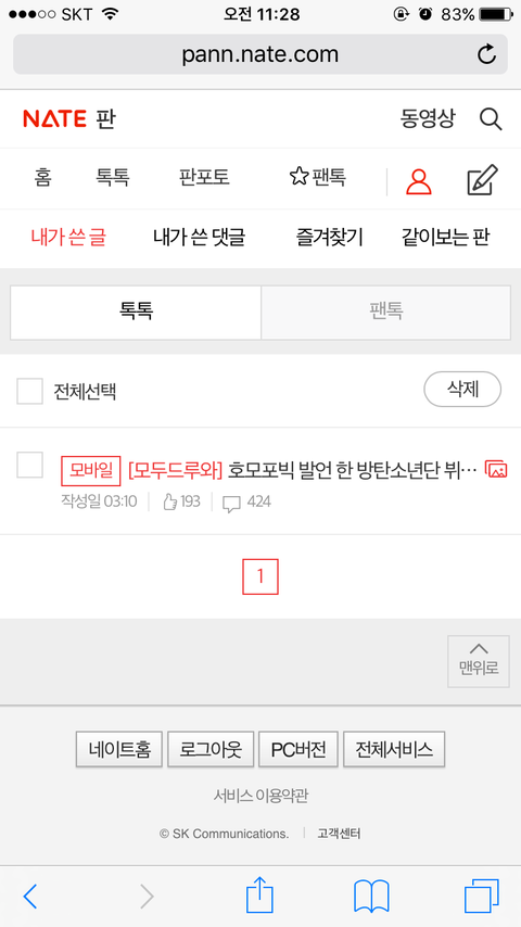 안녕하세요. 네이트판 톡커들의 선택 '호모포빅 발언 한 방탄소논단 뷔' 글 작성자입니다.