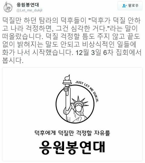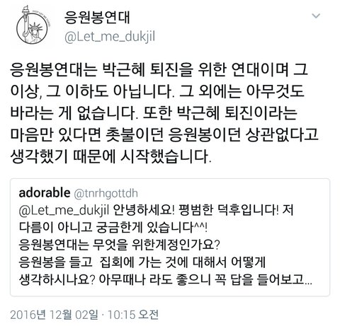 12월 3일의 응원봉 연대 집회 참여로 인해 많은 아이돌 팬/덕후 분들께서 용기를 얻으시고 당당히 응원봉을 들고 집회에 참여 하셨으면 좋겠습니다! 감사합니다!
