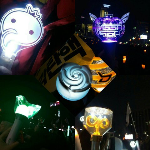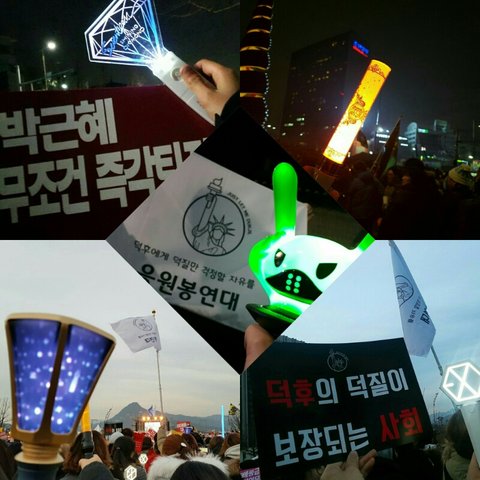 세븐틴, 킹프리, 비에이피, 빅스, 엑소, 무한도전, 틴탑, 블락비, 비스트, 갓세븐, 인피니트, 동방신기, 방탄소년단, g.o.d, 아라시, 비투비, 트와이스, 빅뱅, 소녀시대, 보아 등의 팬들이 응원봉을 들고 광화문 집회에 함께 참여 하였습니다.