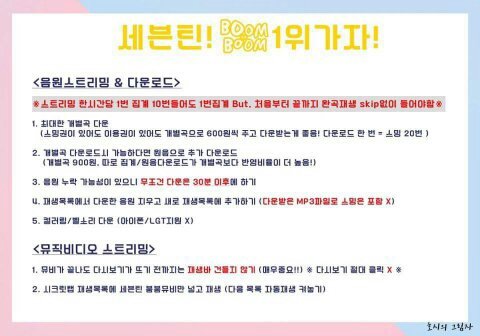 그리고 주의할점은 재생바는 절~대 건들면 안돼 무조건 노래를 처음부터 끝까지 다 들어야 집계 되니까 주의해주고 서양수박은 음소거 해도 집계 들어가니까 학교에서 폰 내는 캐럿들은 음소거 해놓고 폰 내줘! 시험인 캐럿들은 아예 안가져 가는게 더 좋을거야~ 다운은 누락 가능성 있으니까 30분 뒤에!!