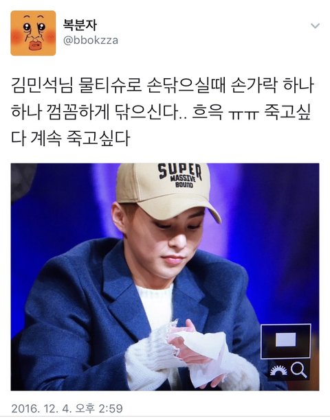 시우민)물티슈로 하나하나 꼼꼼히 손닦으시는