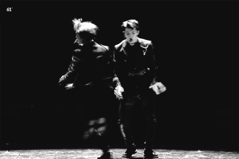 카이와 세훈이 춤을 추는데 마지막에 각자 목에 걸려있는 장치를 빼서 내던짐.