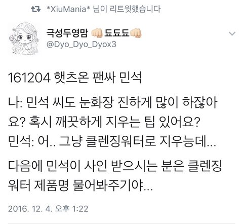 시우민 햇츠온 팬싸 후기 모음