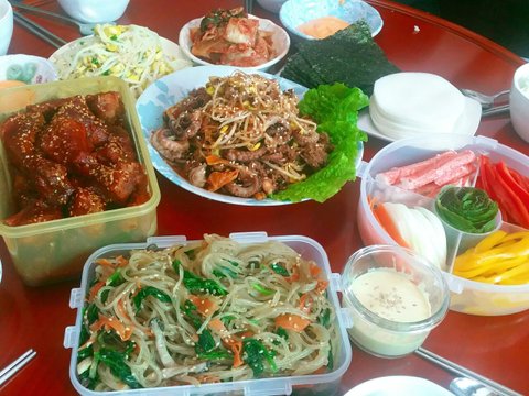 이웃님네 싸갖고가서 등갈비,잡채,월남쌈,쭈꾸미볶음