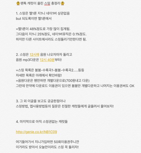 @이 공지는 컴백 첫 주 간은 공지 1페이지에 유지할 계획이므로, 다른 공지를 올리는 것은 자제해 주세요ㅠㅅㅠ