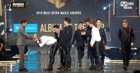 대상 받고 난뒤 모든 아티스트가 들어가고 무대 에 엑소만 남아서 관객들한테 인사함
