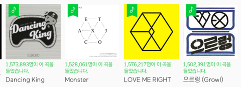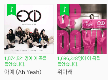 2위가 소시,엑소(시우민 피쳐링포함)(7곡)