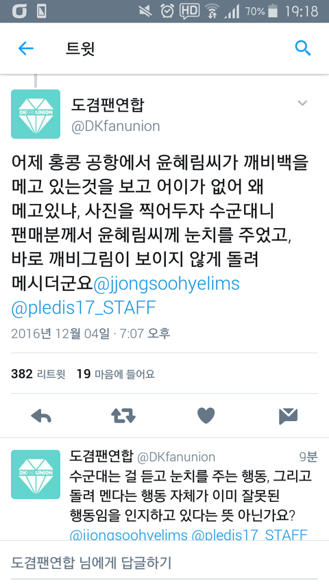 팬들 다 있는 공항에서 그걸 착용하고 있어 왜