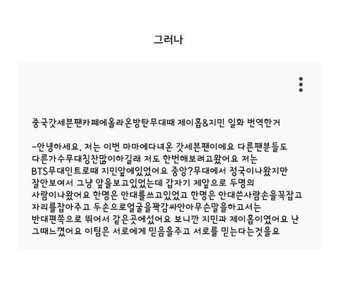 나는 지민이도 너무 멋있고ㅜㅜ안보이는 동생 자리잡아주고 얼굴감싸주며 잘하자고했을 호석이도 감동임ㅜㅜ저 후기보고 괜히 눈물나서 혼났네ㅜ 언제나 형제처럼 서로 믿고 무대에서 최선을 다하는 너희를,위험하고 하기힘들어하는 고난도 안무도 서로 눈을 맞추며 완성하는 그 노력을 사랑한다 진짜..ㅜ