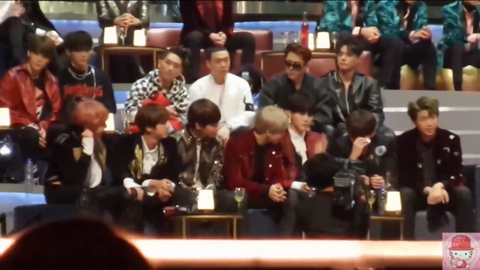 정국이 가수석 돌아와서도 우는데 멤버들 전부 쳐다보면서 막 위로?위로가 아닌데... 뭐라해야하지