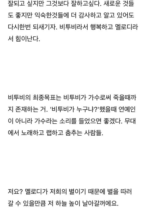 너 자꾸 비투비까려는것같은데 깔게 없어서 못뜬다못뜬다하는거냐 임현식이랑 서은광이 자기들한테는 1위가중요한이유가 자신들노래 많이들어줄것같아서 1위하고싶댔어 그냥 명예이런게아니라 자신들의 노래를더알리고싶대 그리고 어떤 기자분도 인터뷰할때 다른가수분들 다 뜨는데 불안하지않냐고 물어봤을땨도 임현식이 당당하게 말함 자기는 평생음악을할거기때문에 불안하지않다고 너네같은애들이 함부로 못떴다고 평가할애들이아니야 이제5년차에 이렇게뜨기가쉬운건줄알아?? 그리고 멜로디들도 같은마음이란거알거임