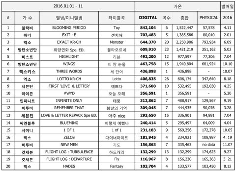 +) 앨범판매량 순위