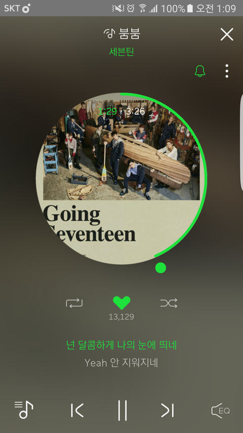 세븐틴 노래가 나오길 기다리고 있다가 계속 듣고있어요