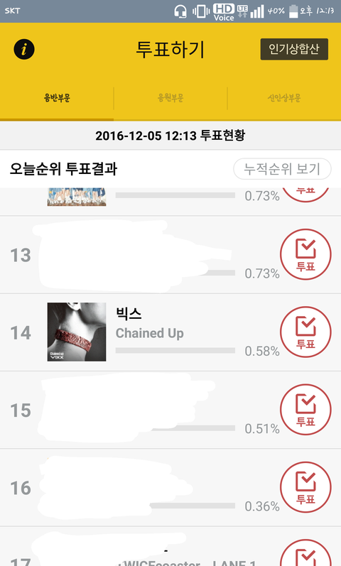 골ㄷ ㅣ 앱깔아서 투표하쟈얘드라!! 전에 aaa 앱깔아서 트표했던 것처럼 하면되는거야!!순위가 좀 낮드라;;아직 다들 몰라서 그런가 골디는 사슬로 올라와이써!!열투열투