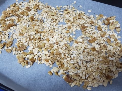 레시피에는 호두는 오븐에 굽고, 오트밀은 후라이팬에 볶으라고 되어있었지만...