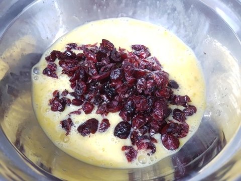 그리고 크랜베리는 그냥 사용해도 되지만 계란물에 담가 불려주었어요!